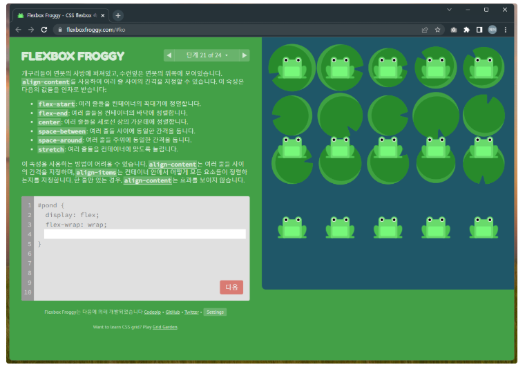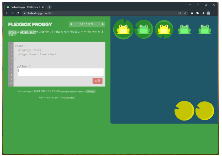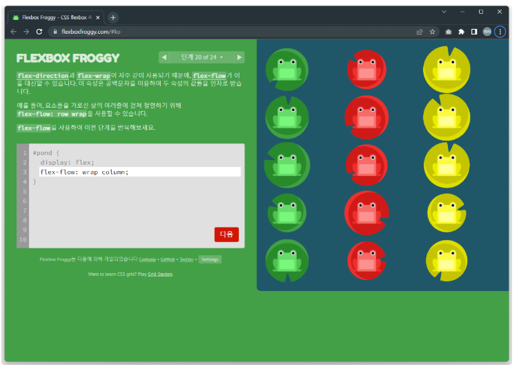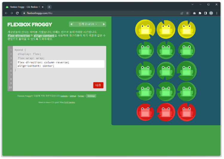 재미있게 Flex를 마스터하는 - Flexbox Froggy 3/3